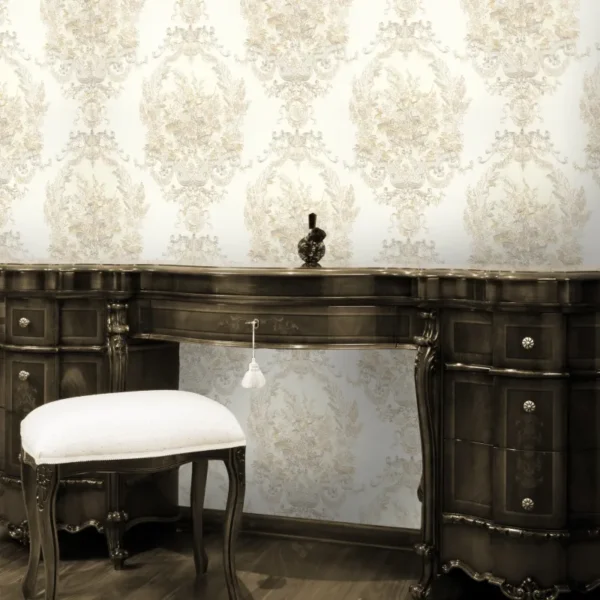 طرح این کاغذ دیواری همان طور که از نام آن پیداست، به صورت داماسک است.