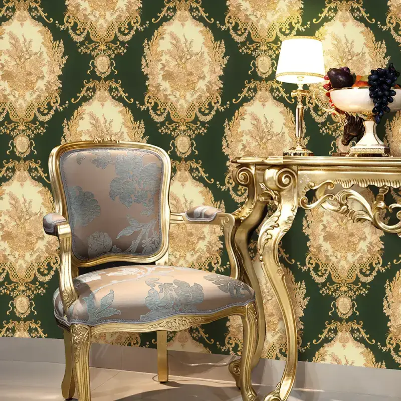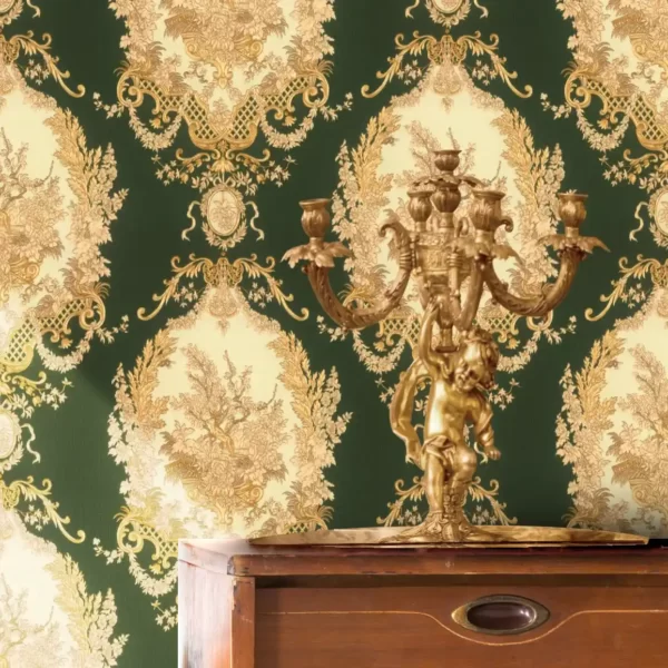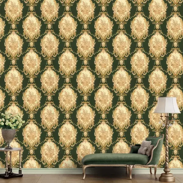 طرح این کاغذ دیواری همان طور که از نام آن پیداست، به صورت داماسک است.