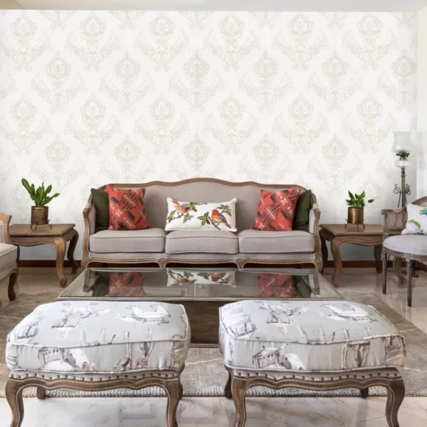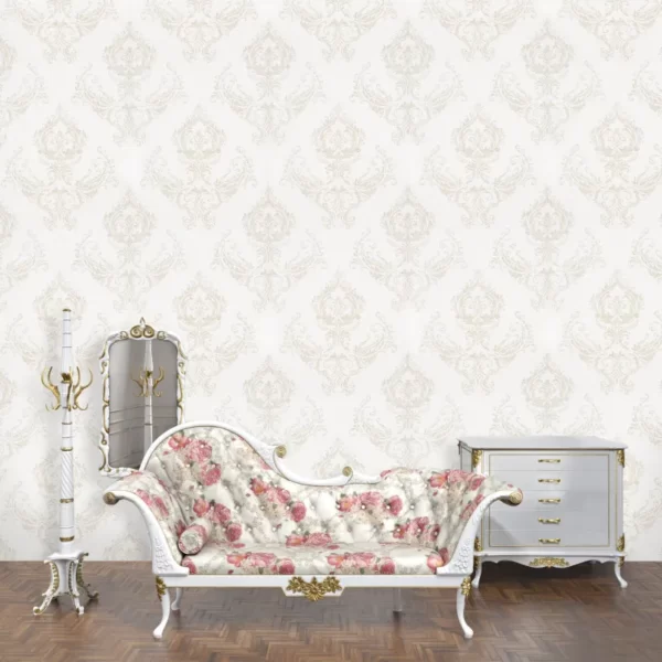 طرح این کاغذ دیواری همان طور که از نام آن پیداست، به صورت داماسک است.
