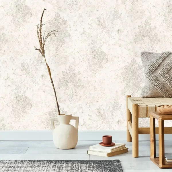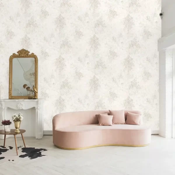 طرح این کاغذ دیواری همان طور که از نام آن پیداست، به صورت داماسک و پتینه است.