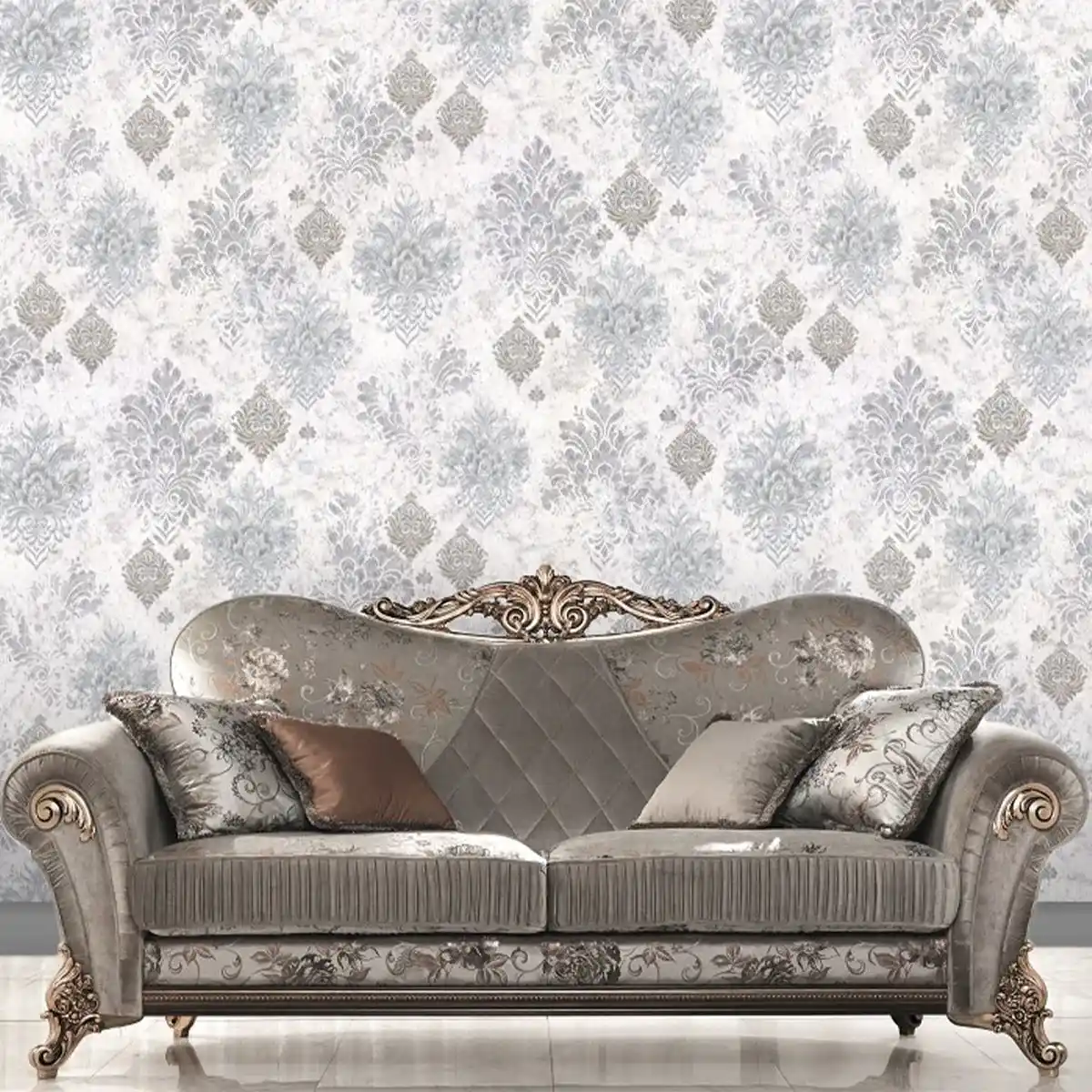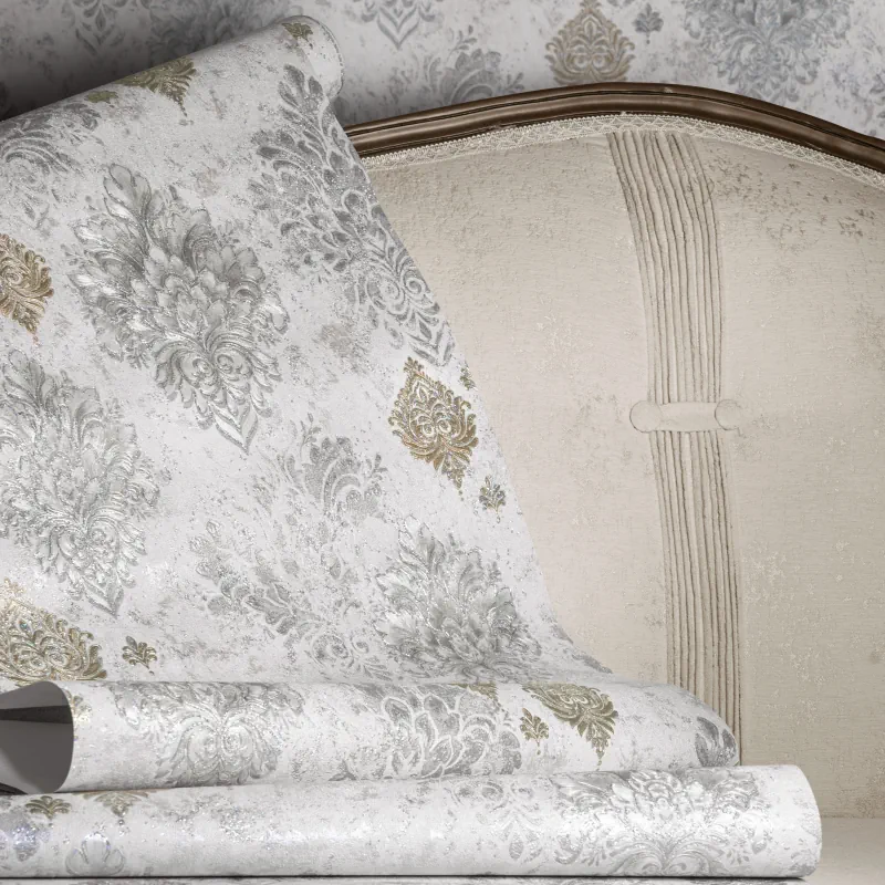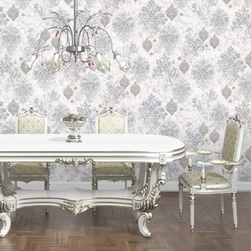 طرح این کاغذ دیواری همان طور که از نام آن پیداست، به صورت داماسک و پتینه است.