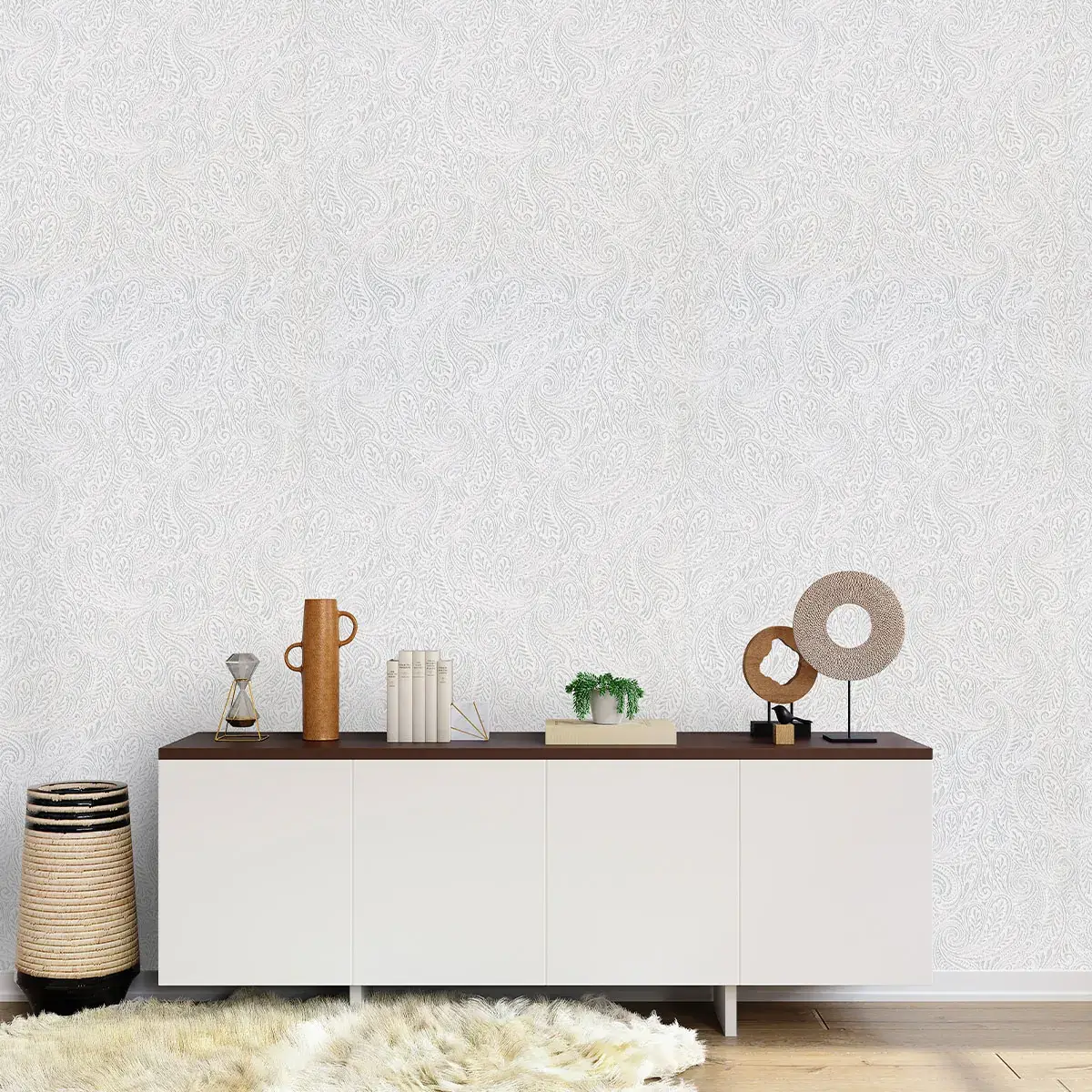 طرح این کاغذ دیواری همان طور که از نام آن پیداست، به صورت نقش و نگار است.