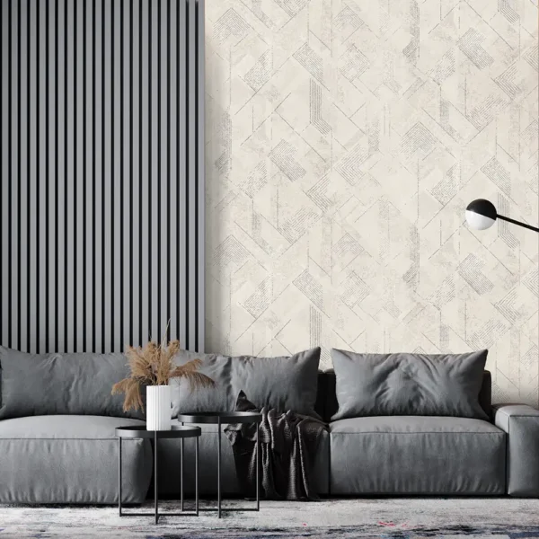 کاغذ دیواری طرح هندسی / پتینه سفید کد ۱۱۰۳۴